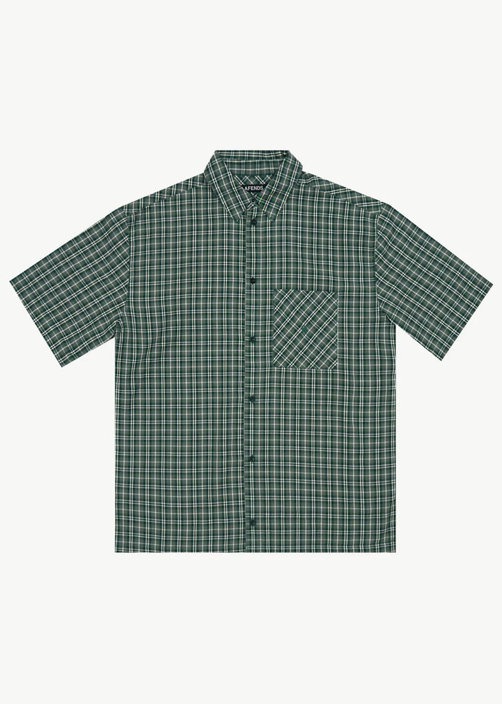 Afends'Shipwreck' in a new pine colour. Designed with a boxy fit, traditional collar and left patch pocket with an embroidered flame. Made from a lightweight and breathable fabrication.