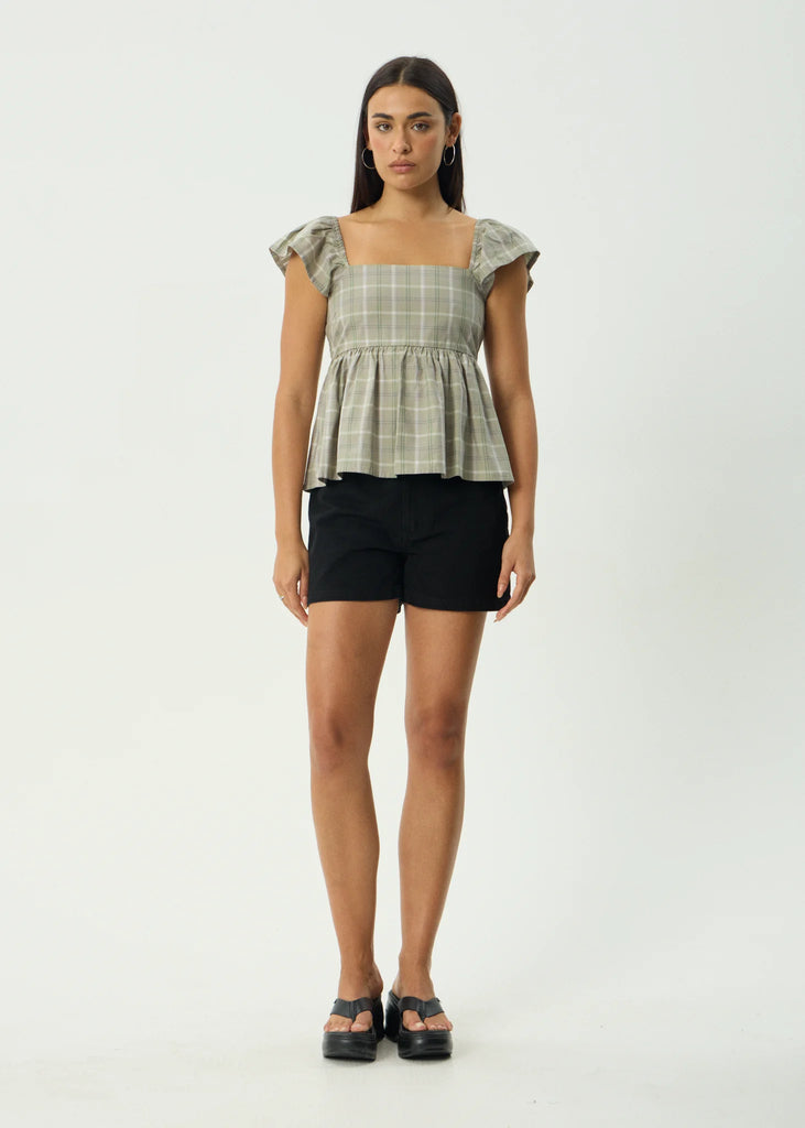 AfendsSuper lightweight and breathable in 100% organic cotton, the 'Scout' collection is made for the warmer months ahead. Cut in our best selling silhouette: designed with a fitted bodice, gathered peplum, flutter sleeves, and elasticated shirring at the back.