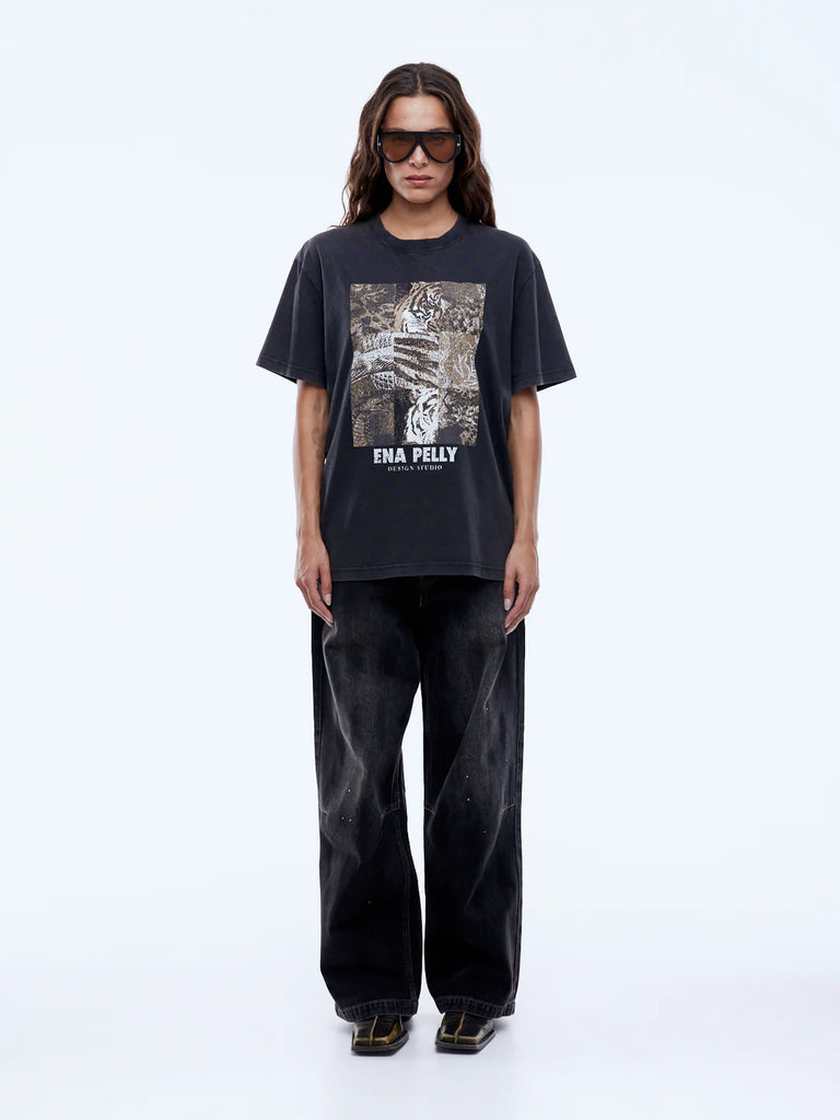 The Mixed Animal Tee is cut in a boxy, relaxed shape from soft cotton jersey in vintage black. Designed with a drop shoulder and exclusive animal-inspired graphic, the vintage wash and plastisol print add bold, street-savvy appeal.
