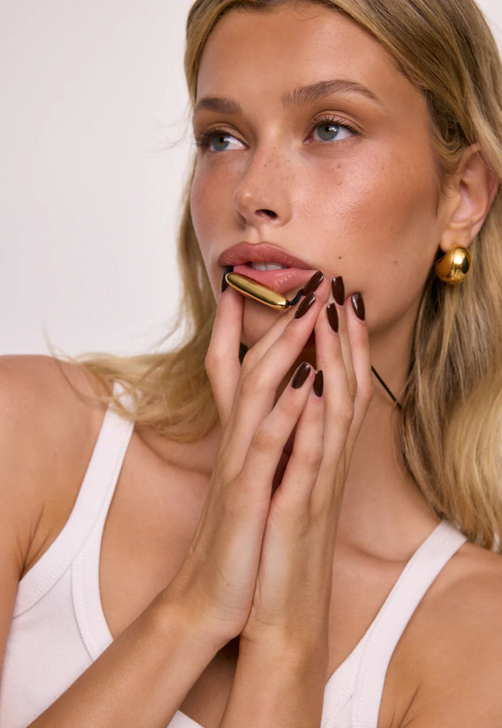 CendreThe Lexie Necklace features a sleek rectangular pendant in 18k premium gold-plated stainless steel. Finished with a black magnetic cord, it allows you to adjust the length to suit your personal style. Wear it alone for a subtle statement or layer it for a stacked look.