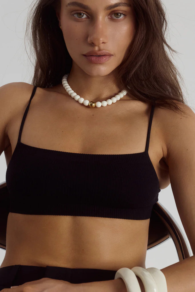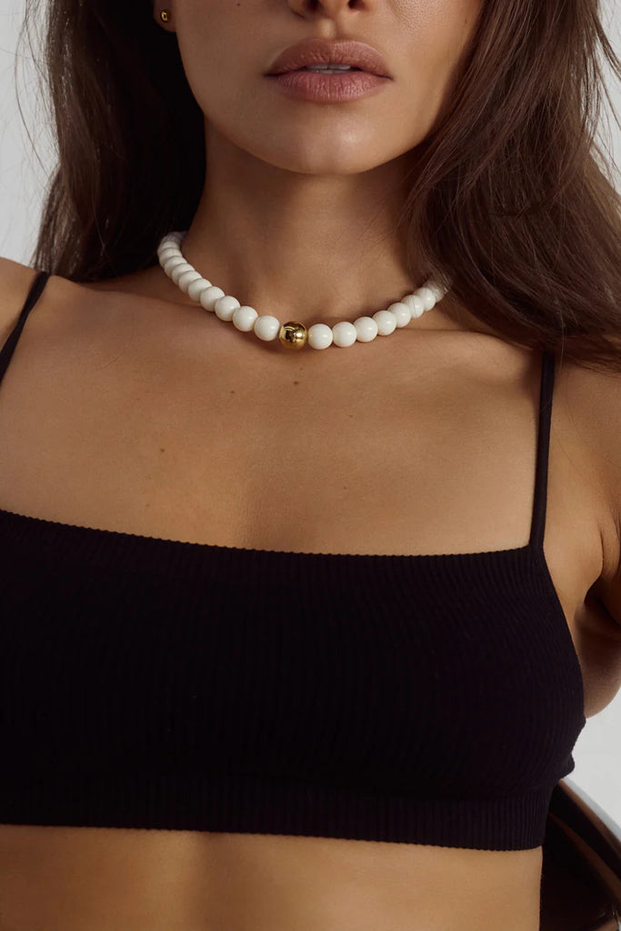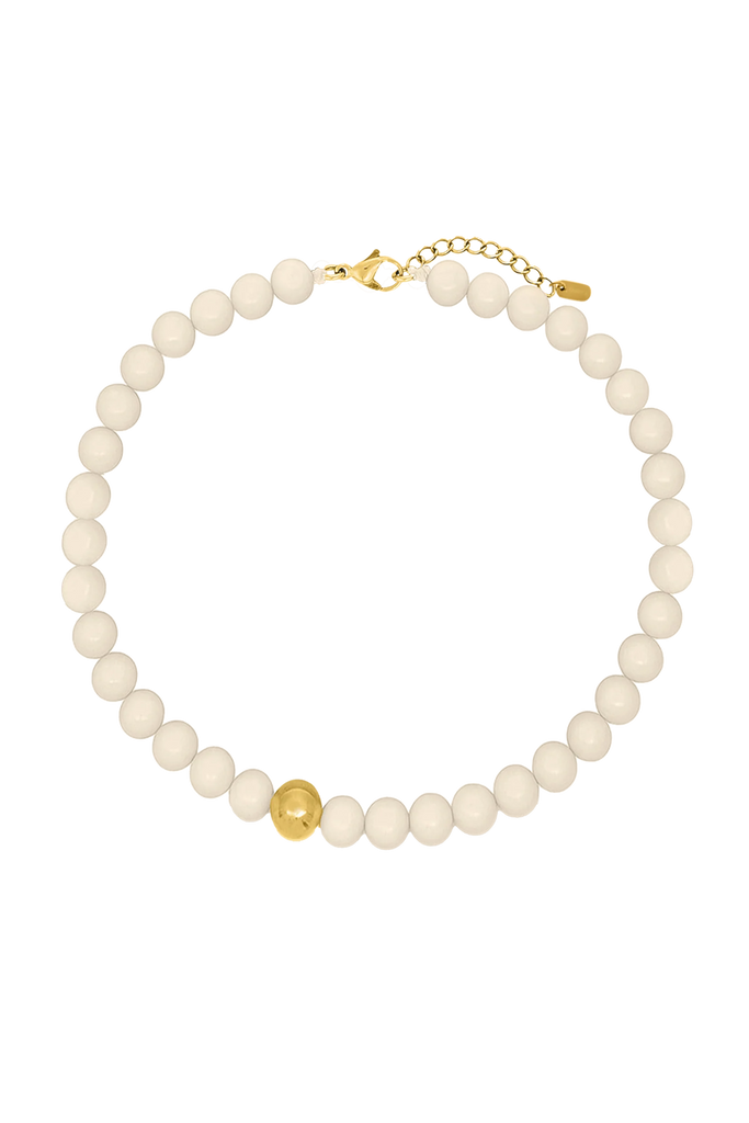 CendreBalancing structure and softness, the Prudence Necklace features smooth vanilla-toned resin beads centred by a single 18k gold plated sphere.