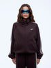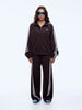 The Valentina Zip Thru is crafted in a smooth rayon blend with a relaxed, sporty silhouette, finished in cocoa for an elevated everyday layer. Designed with a two-way zip, raglan sleeves and contrast sleeve stripe detailing, it features elasticated cuffs and an adjustable hem with drawcord toggles to wear loose or cinched. Welt pockets and stacked Ena Pelly logo prints complete the confident, street ready feel.