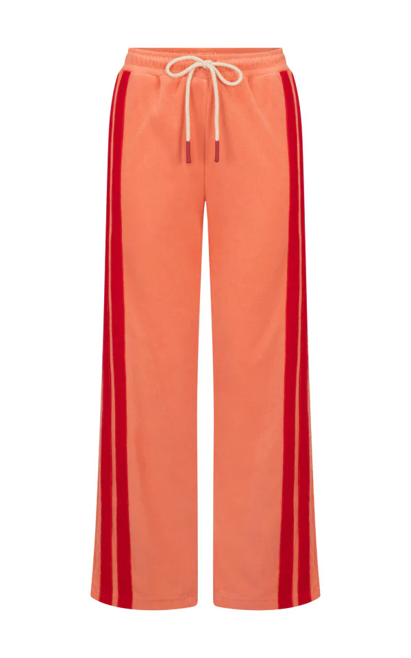 Araminta JamesExperience the ultimate blend of elevated comfort and coastal cool, with our wide-leg Corfu Terry Pant in Bougainvillea Pink. This must-have pant is cut from 100% premium cotton terry towelling fabric, and features velour side-panels in a contrasting red hue. With an elastic waistband for comfort, and side pockets for practicality, wear yours with our Santorini Oversized Tee in Warm White for a relaxed everyday look.