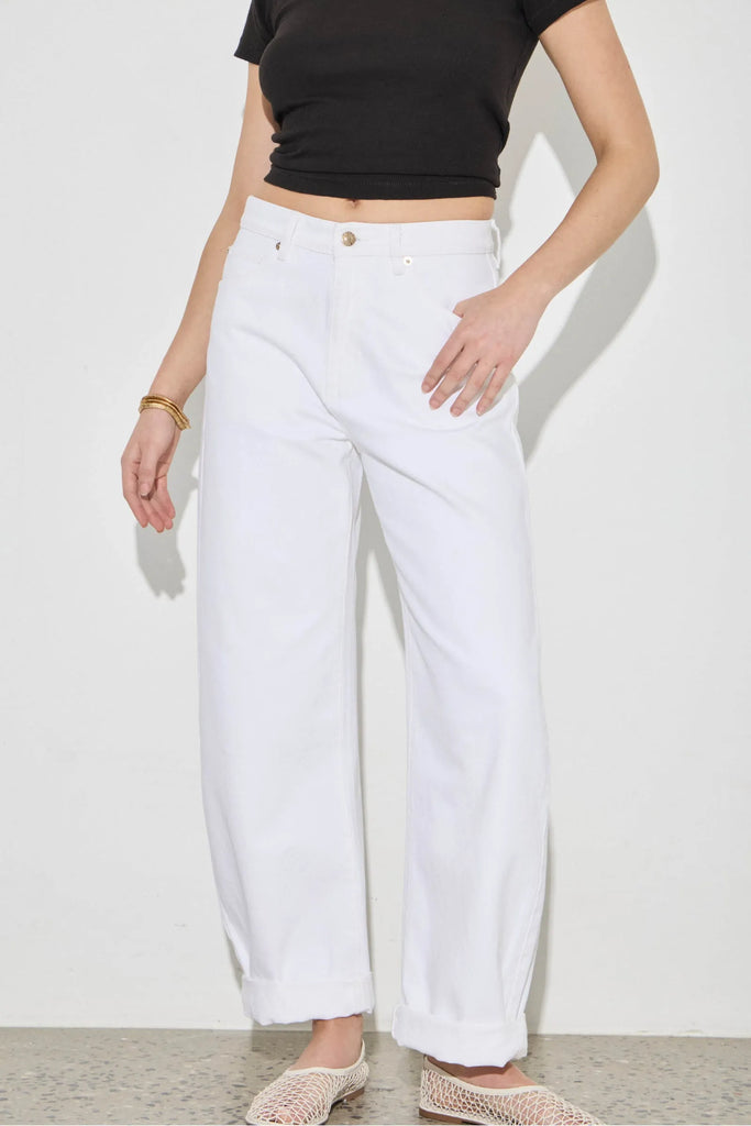 • Has a longer leg than our Gigi Barrel, finishing just below the ankle which can be rolled up for a more cropped look