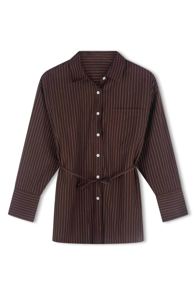 ArcaaOversized cotton shirt in a relaxed boyfriend cut, featuring an adjustable waist tie, oversized cuffs, and centre front button closure. Designed for layering or as a lightweight outer layer in warm to mild climates.