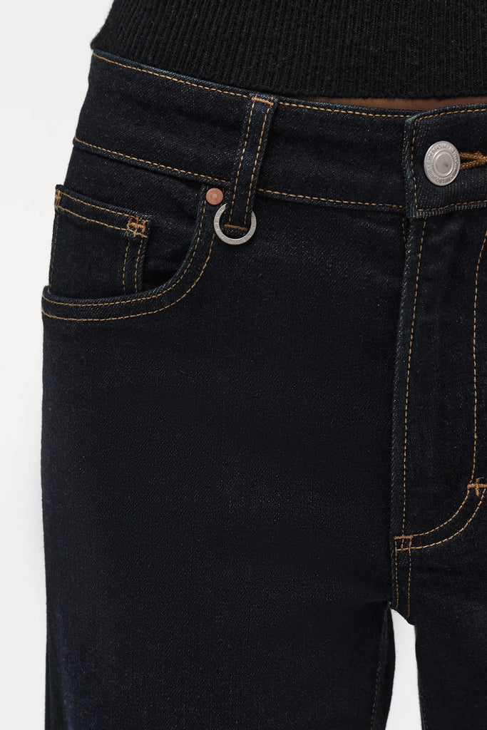 - The fitted mid-rise waist and elongated leg length offer a feminine take on a relaxed silhouette, combining sophistication with comfort