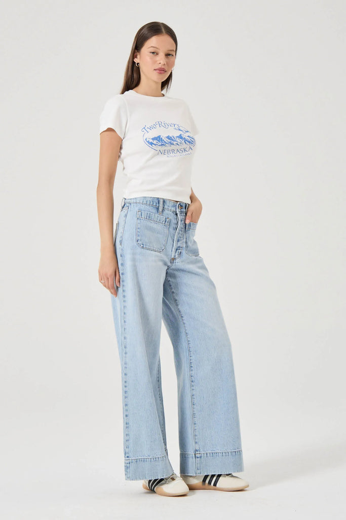 - Classic white colourway with Rolla's exclusive front design in contrast baby blue