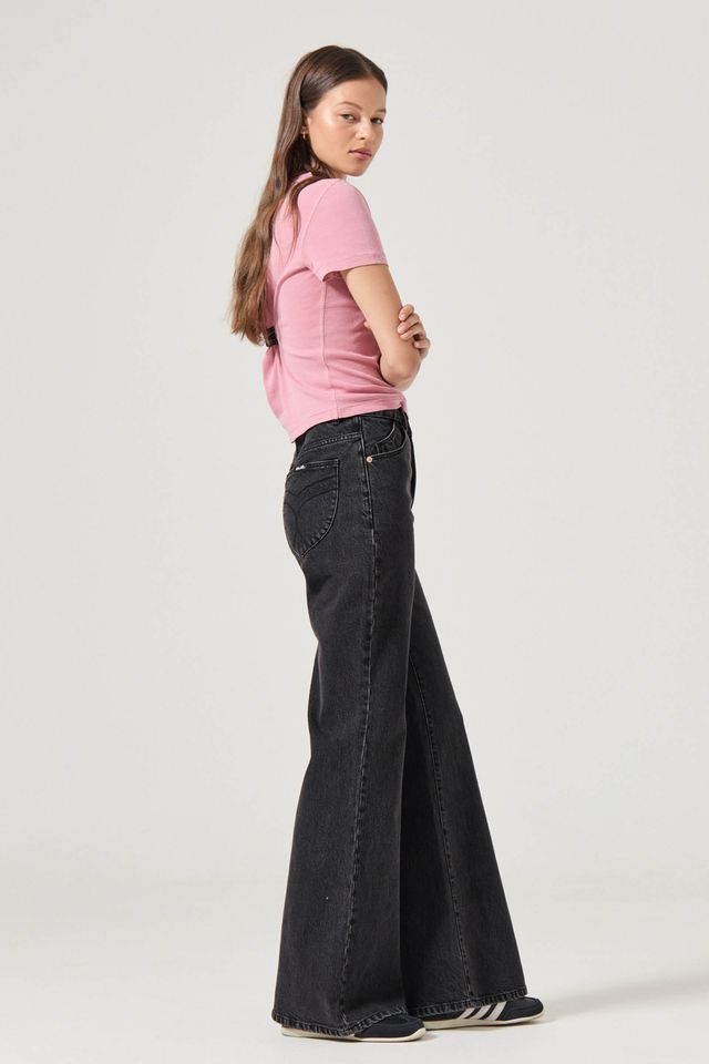- Slim fit with a wide sailor flared leg
