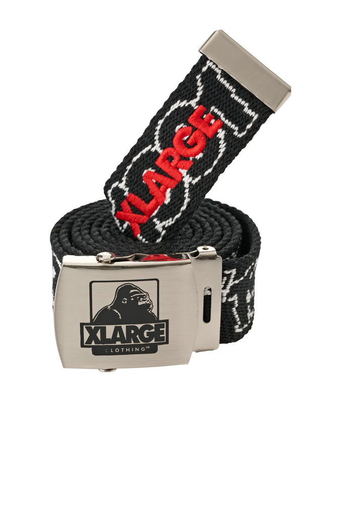 The 91 Web Belt in Black and White is a classic buckle belt with metal hardware and embroidered logo.