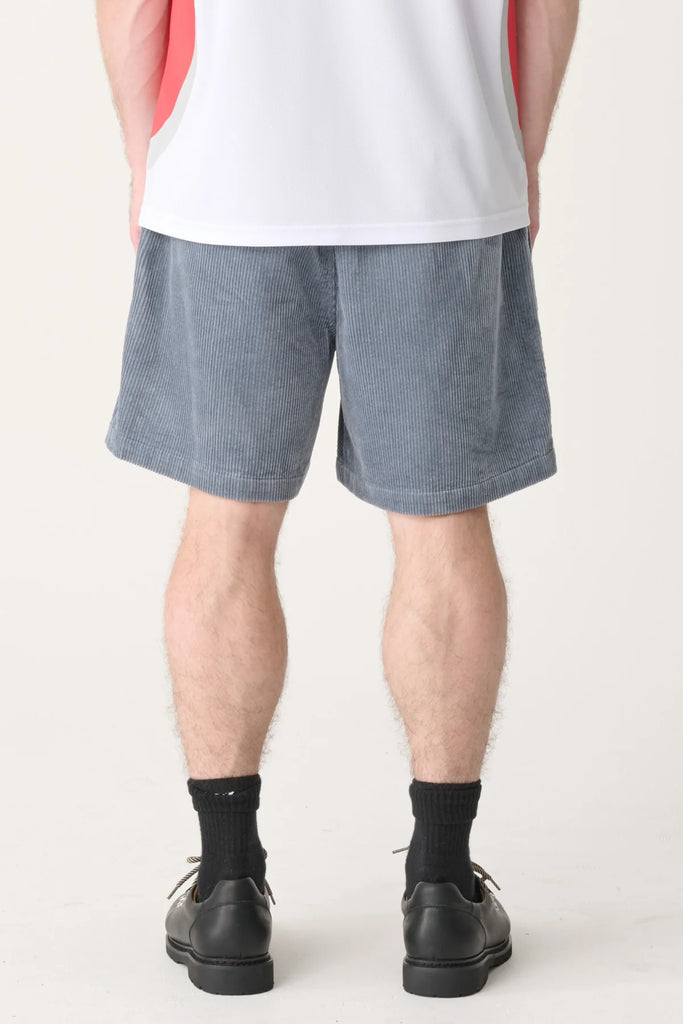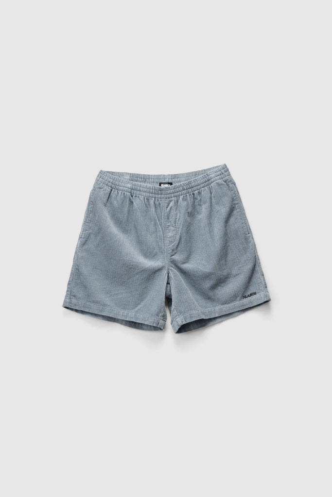 The 91 Wide Cord Beachshort in Dusty Ice is an elasticated waist short with an internal drawcord.